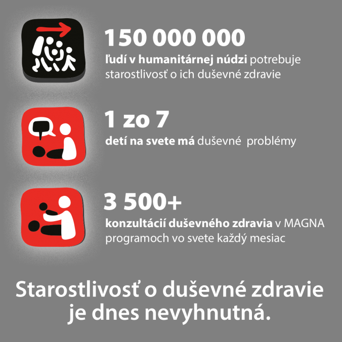 Pri príležitosti Svetového dňa duševného zdravia by sme sa s vami radi podelili o dobrú správu. Vďaka vašej štedrosti môžeme túto starostlivosť poskytovať čoraz väčšiemu počtu pacientov a čoraz účinnejšie. Len za posledný rok sme zvýšili kapacitu lekárskych tímov MAGNA poskytujúcich psychologickú pomoc na viac ako 3 500 konzultácií mesačne. Bez vašej pomoci by to nebolo možné. Za to vám patrí obrovská vďaka
