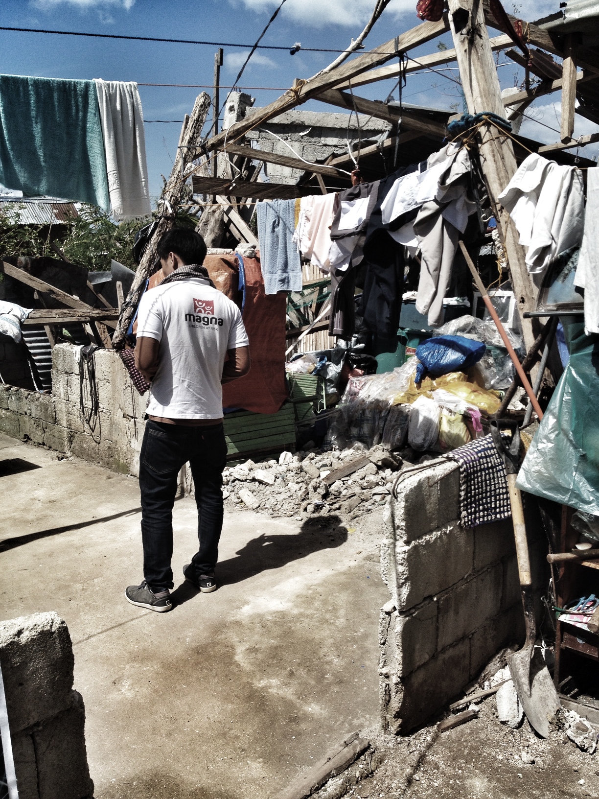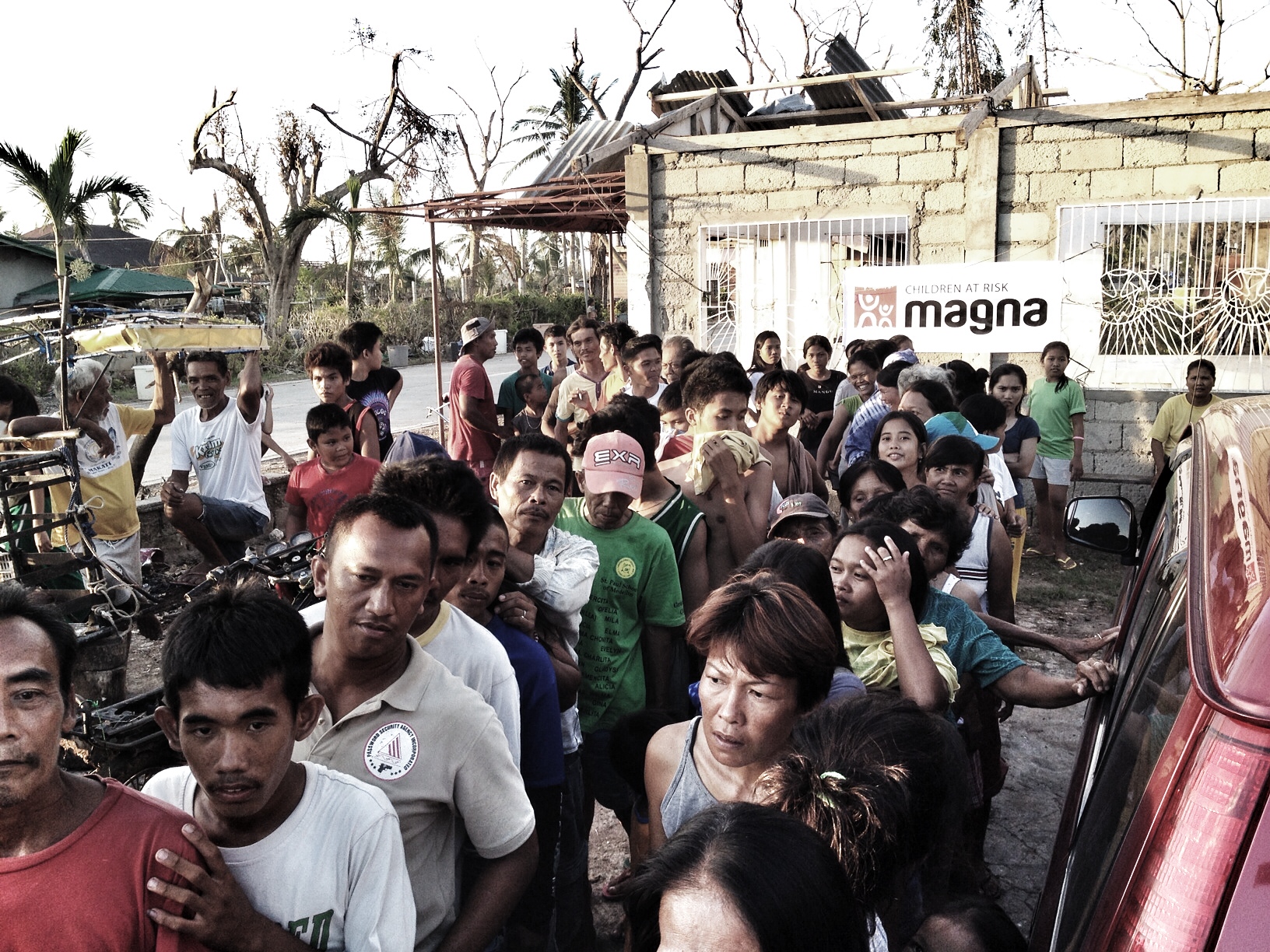 Ľudia sú stále v šoku. Nikdy takú katastrofu v živote nevideli a neboli ani na také niečo pripravení, Nikto ich nevaroval. Vietor valcoval všetko, strechy domov lietali, prevracalo autá. K ich upokojeniu nepridávajú ani pravidelné otrasy zeme, ktoré sme zažili napríklad aj túto noc…”, hovorí MAGNA pracovník Romain Santon z Cebu na Filipínach a dodáva “Severná časť ostrova Cebu je veľmi poľnohospodárska a miestni tu žijú prevažne z predaja cukrovej trstiny a manga. Očakávali úrodu v decembri, ale teraz je všetko zničene a tým pádom prišli o ich hlavný príjem na budúci rok. Pokiaľ ide o zdravotnícke alebo psychosociálne služby tie sa tam v súčasnosti nenachádzajú žiadne.”