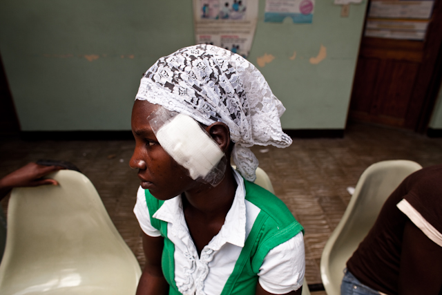 Dieťa po amputácii oboch končatín čaká na kontrolu v Haitan Community hospital, kde Magna pôsobí v rámci humanitárnej operácie na Haiti. © by Martin Bandžák